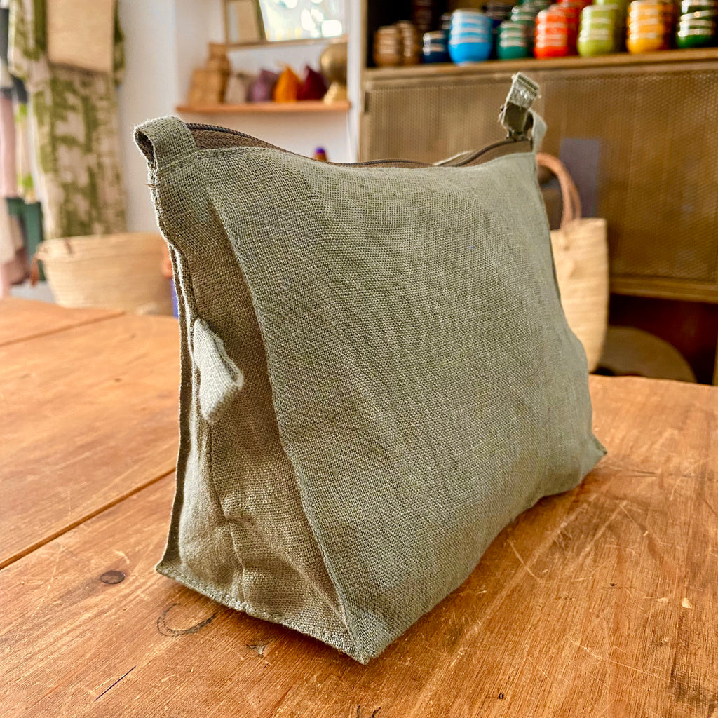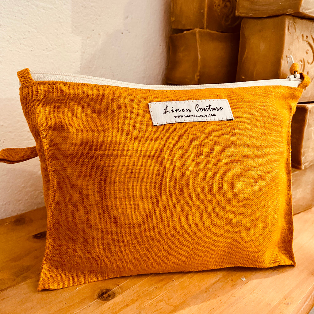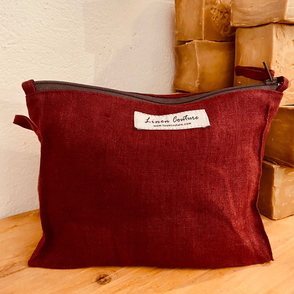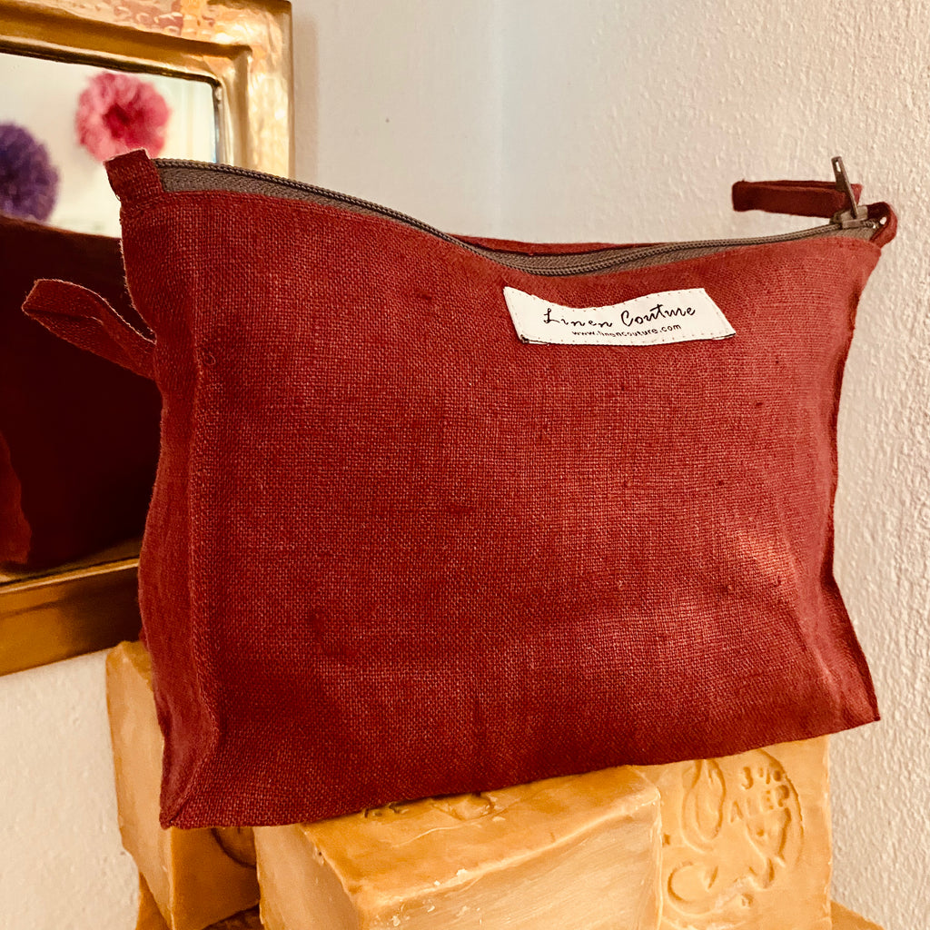 Bolsa neceser 100% lino con cierre de cremallera. Realizado a mano.