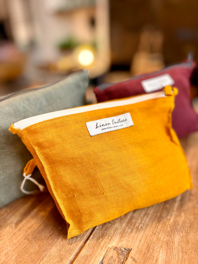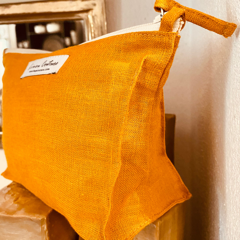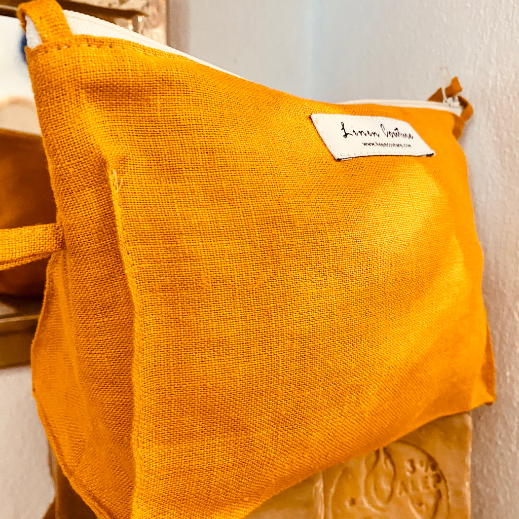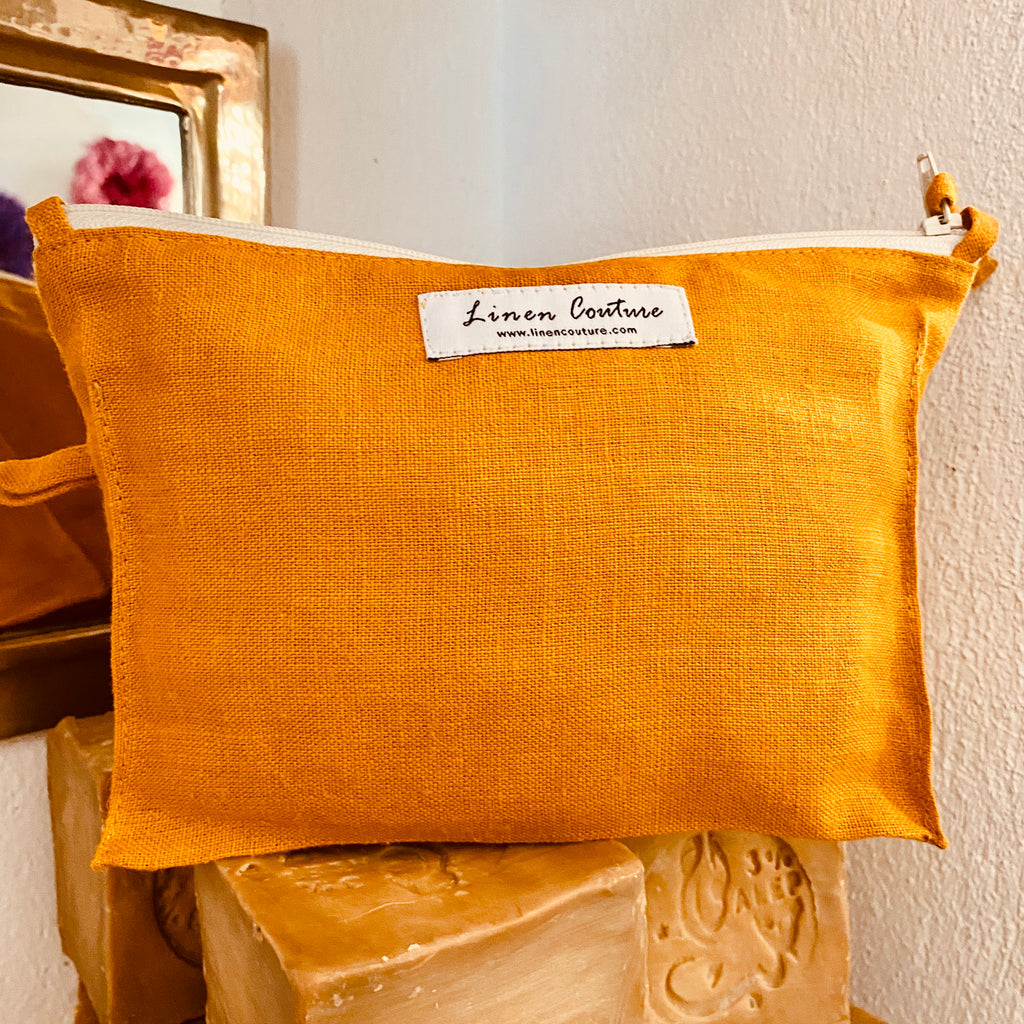 Bolsa neceser 100% lino con cierre de cremallera. Realizado a mano.